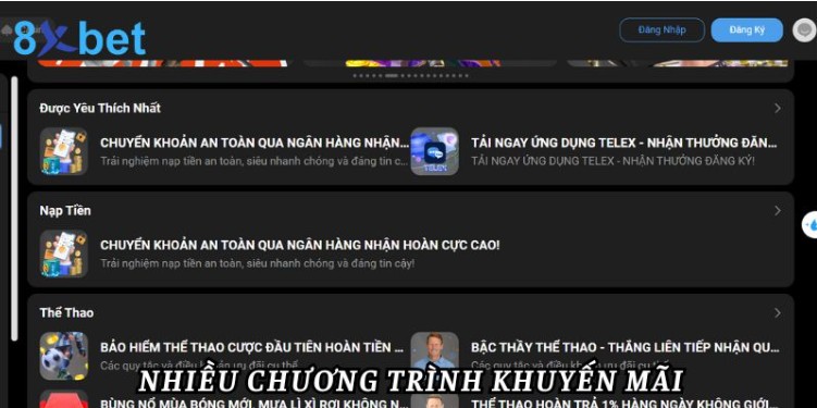 Being an 8xbet member guarantees numerous exclusive promotions and bonuses. Additionally, the platform provides a cashback program ranging from 1% to 5% for players who experience losses, a rare feature among bookmakers in the market.
