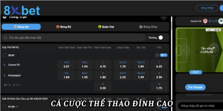 8xbet provides a comprehensive selection of sports, including football, basketball, tennis, and virtual sports. Bettors can enjoy hundreds of matches daily with various betting options. Moreover, the attractive payout rates at 8xbet allow players to win significant amounts in just a few bets.